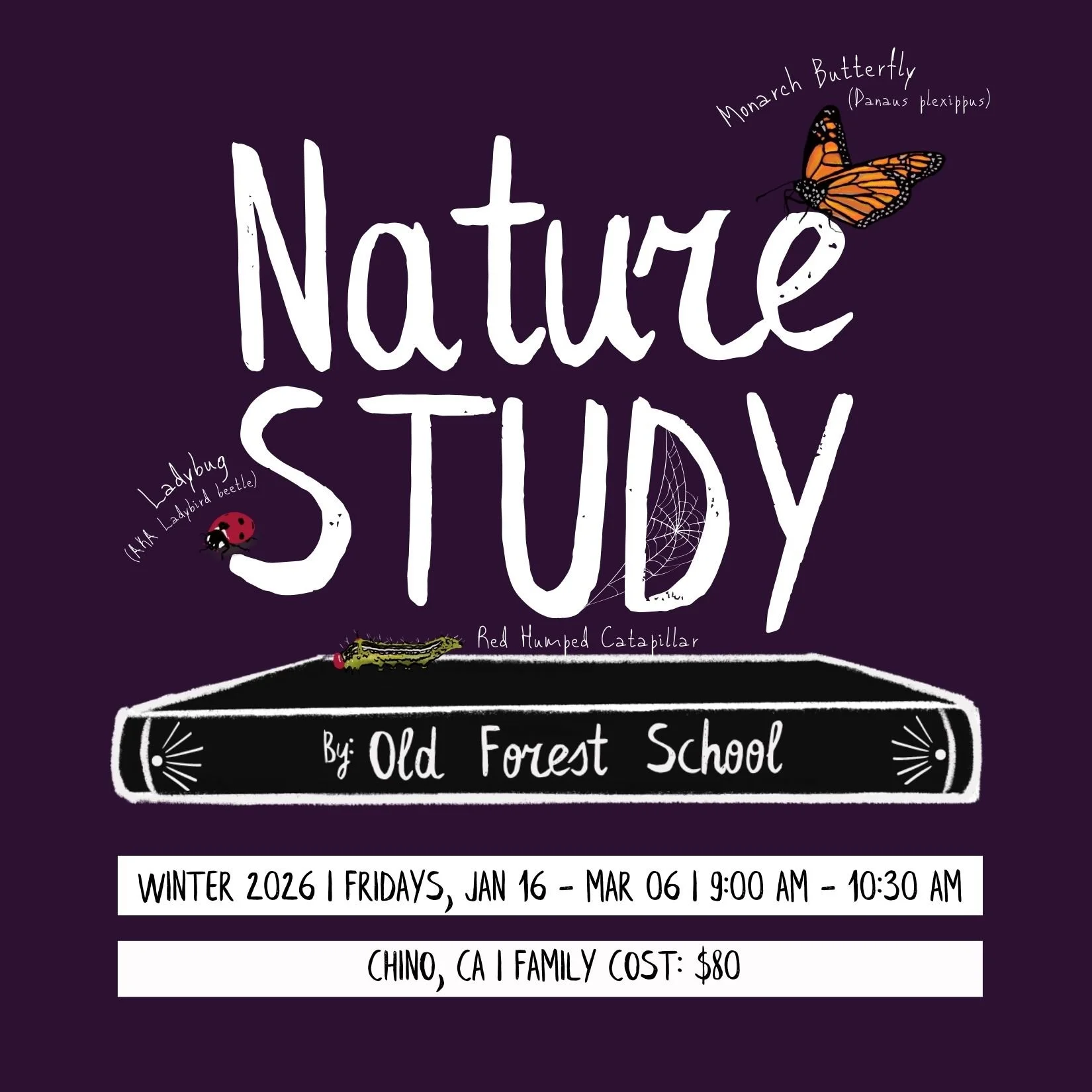 This season includes eight 90-minute sessions, a nature notebook, and a drawstring backpack for each child. Additional supplies will be available during each session to aid in engagement with the week's theme. Old Forest School is not charter-approved for funds. We use the Charlotte Mason method and adhere to a Christian worldview.